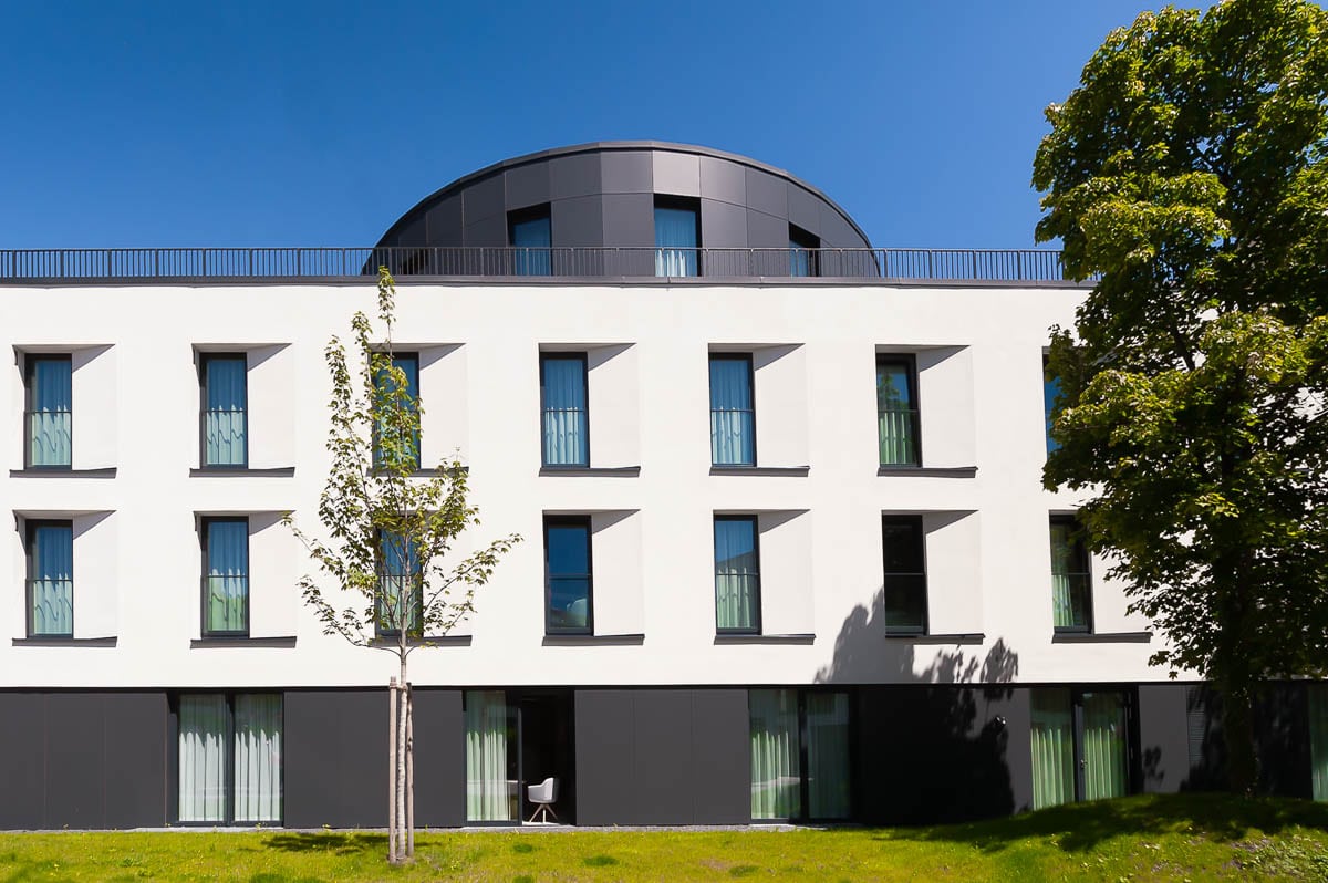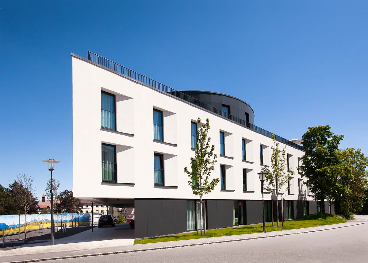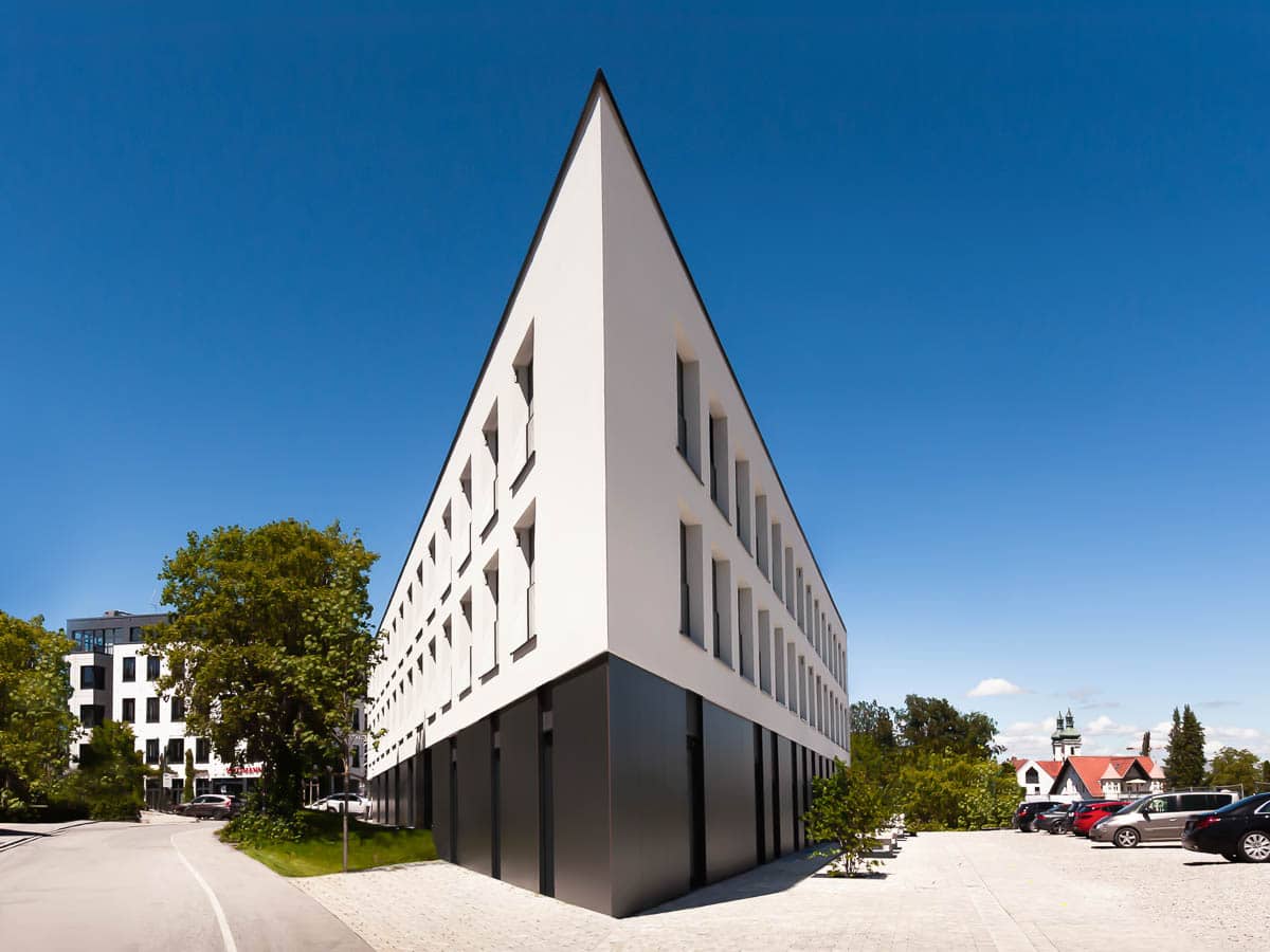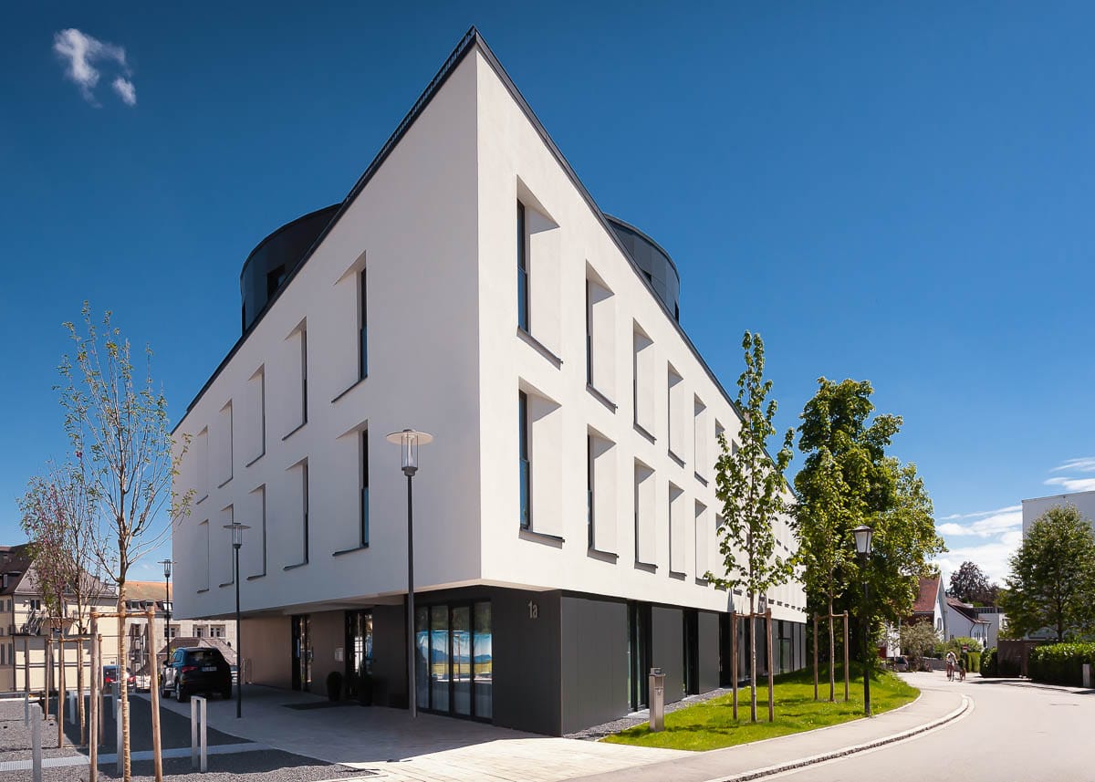 Im Zentrum von Tutzing entstand eine private Akutklinik für Psychosomatik und Psychiatrie. Das Gebäude in Form eines Kuchenstücks steht schnittig im Stadtraum und wird in der Nutzung durch eine Tanzschule und einem Kochstudio ergänzt.