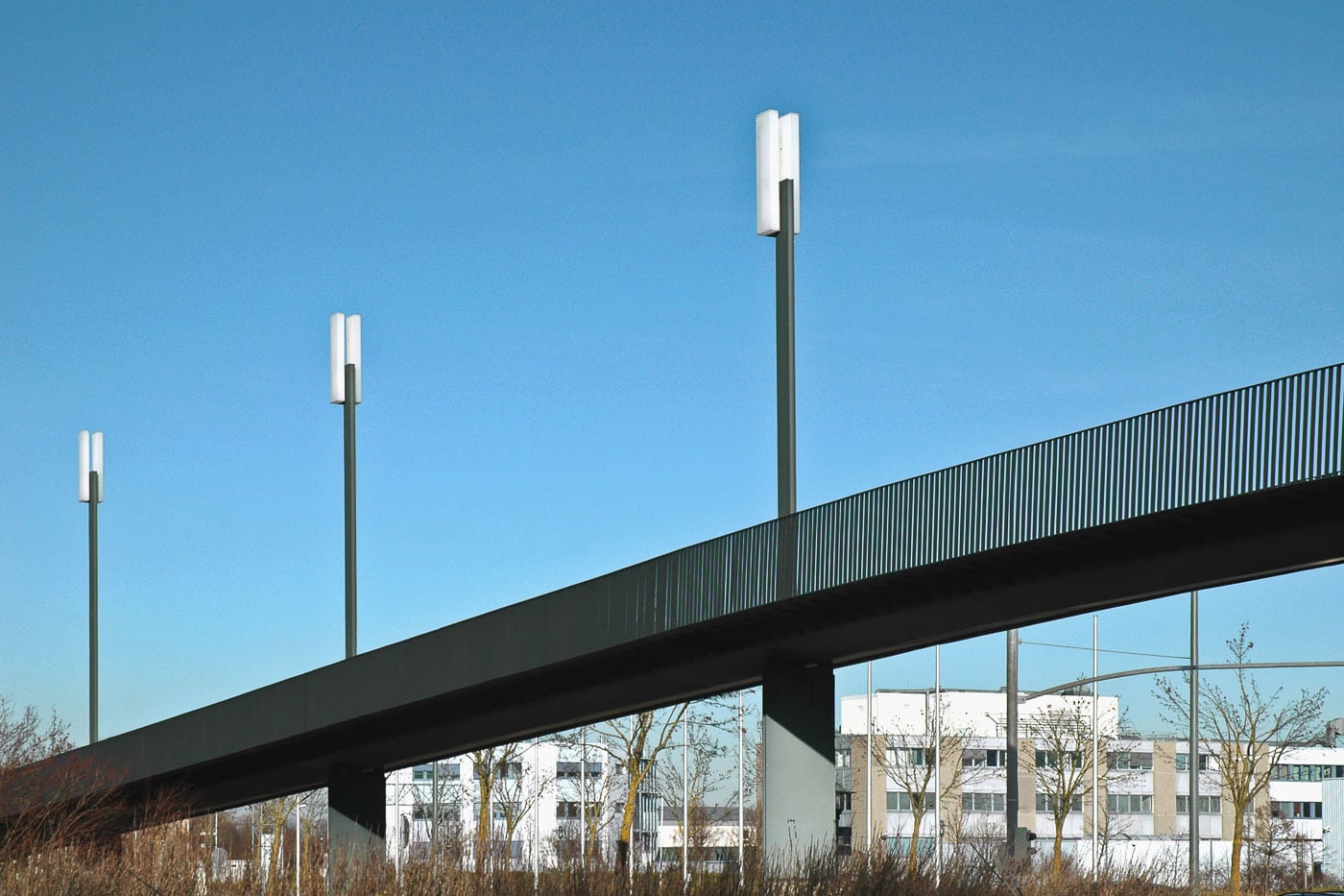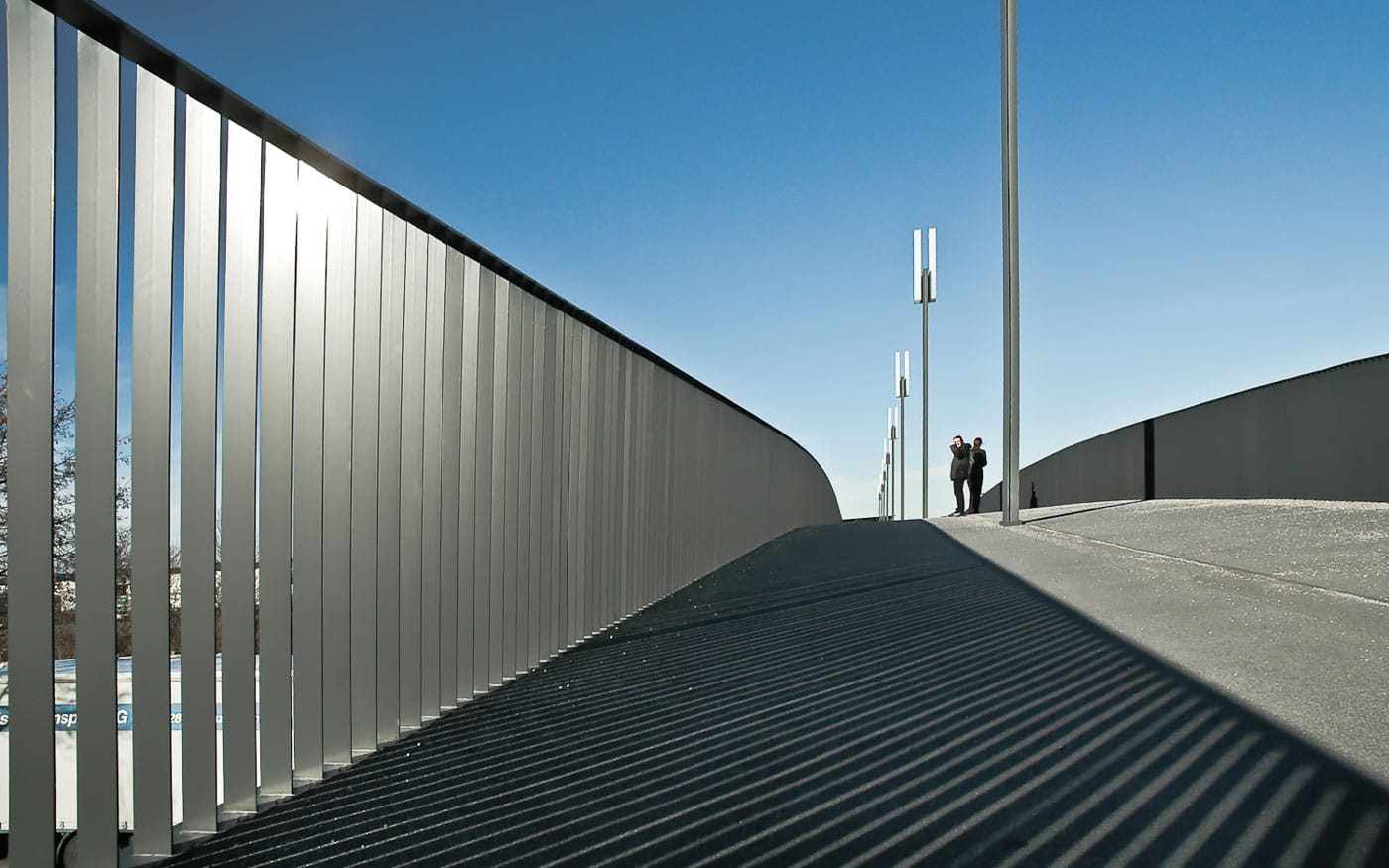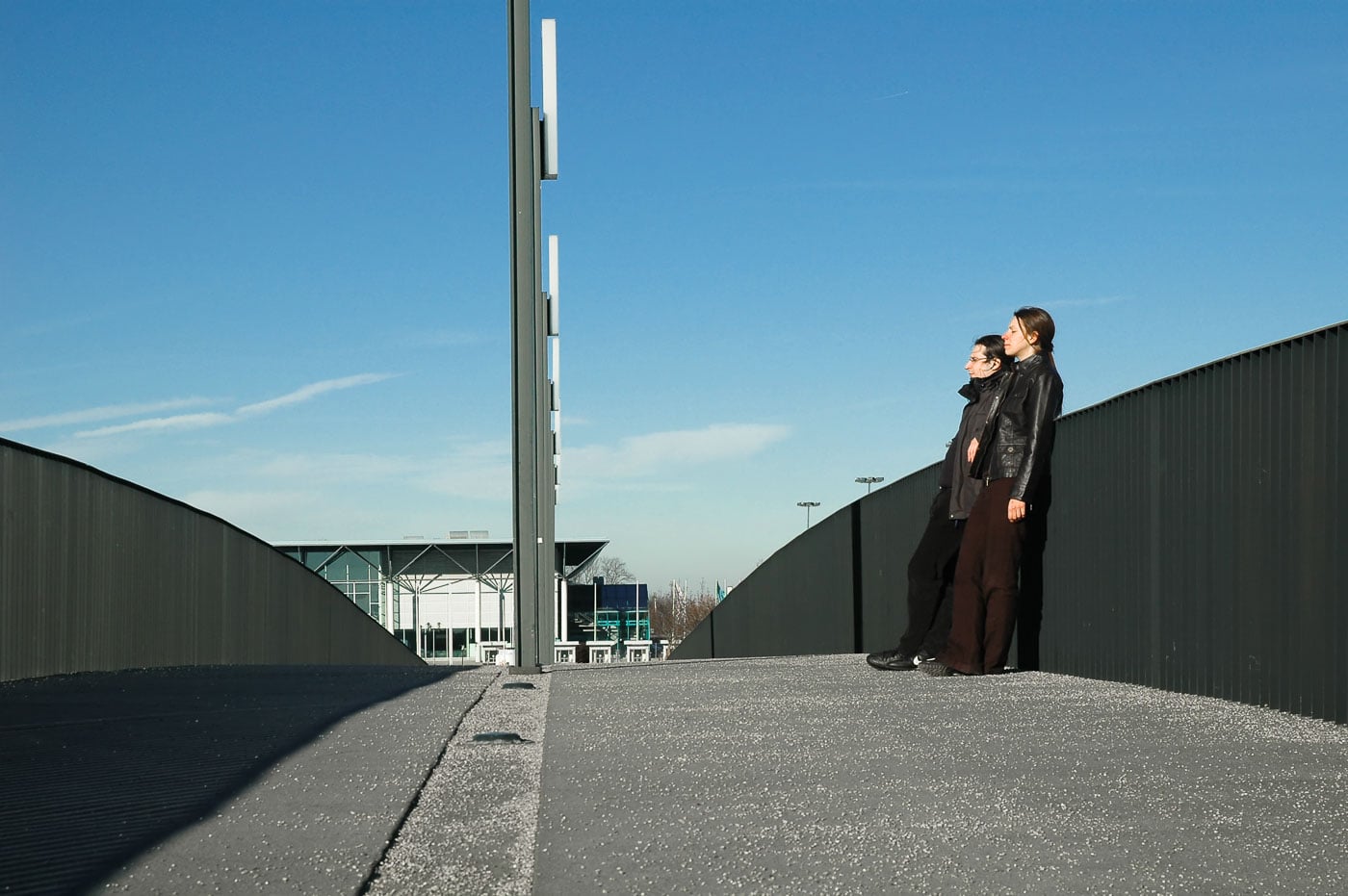 Der elegante Steg verbindet zwei Stadtteile und wird somit auch außerhalb der Messeaktivitäten vielfach genutzt.