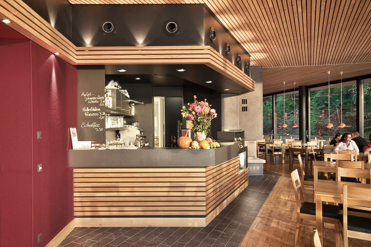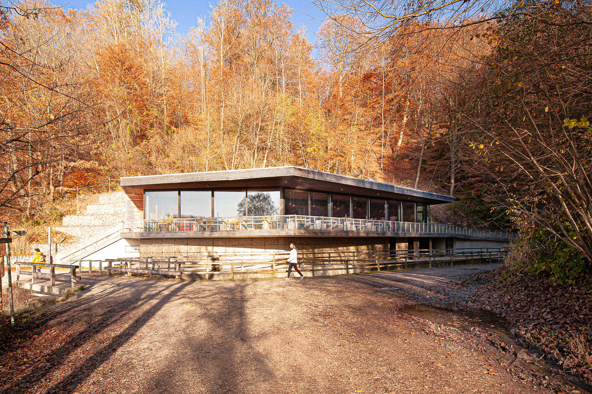 Die Teufelsküche, das Restaurant am Lech, ist nur zu Fuß zu erreichen. Sie steht mit ihrer großzügigen Aussichtsterrasse selbstbewusst am Ufer des Stausees.