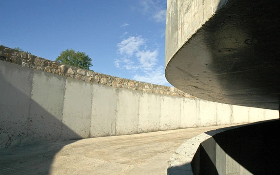 Along the course of the stream, a flower path over 1 km long was laid out, mixed with shoulder-high grasses. The former farm wing was designed as a long stables building, the area between the castle and the farm buildings was developed as a fairground with water feature. The castle, formerly situated on a peninsula, was upgraded to a moated castle by blasting. Furthermore, an underground car park for the private car collection of the owner was built on the castle island. The little sister island was developed as a helipad.
