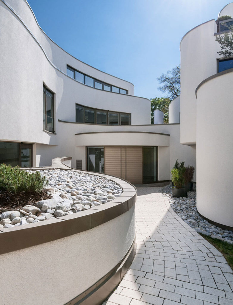 This project was a unique statement at the time of its realisation in Munich between 2007 and 2009. The exclusive villa location in the Herzogpark in Bogenhausen placed the highest demands on all those involved. Majestic old trees characterised this property on the Isar plateau for decades. A residential ensemble with 10 condominiums was to be harmoniously integrated into the park-like surroundings with modern, high-quality architecture where previously only a small villa had stood.